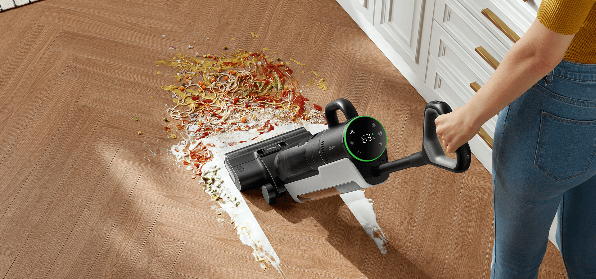 ¿Ha ensuciado algo? Deje que el H12 Dual se encargue. La potencia de succión de 16 000 Pa, el cepillo con rodillo de 520 r. p. m. y el rascador del cepillo integrado son un trío que garantiza el mejor aspirado para disfrutar de suelos limpios y sin restos de pelo.
