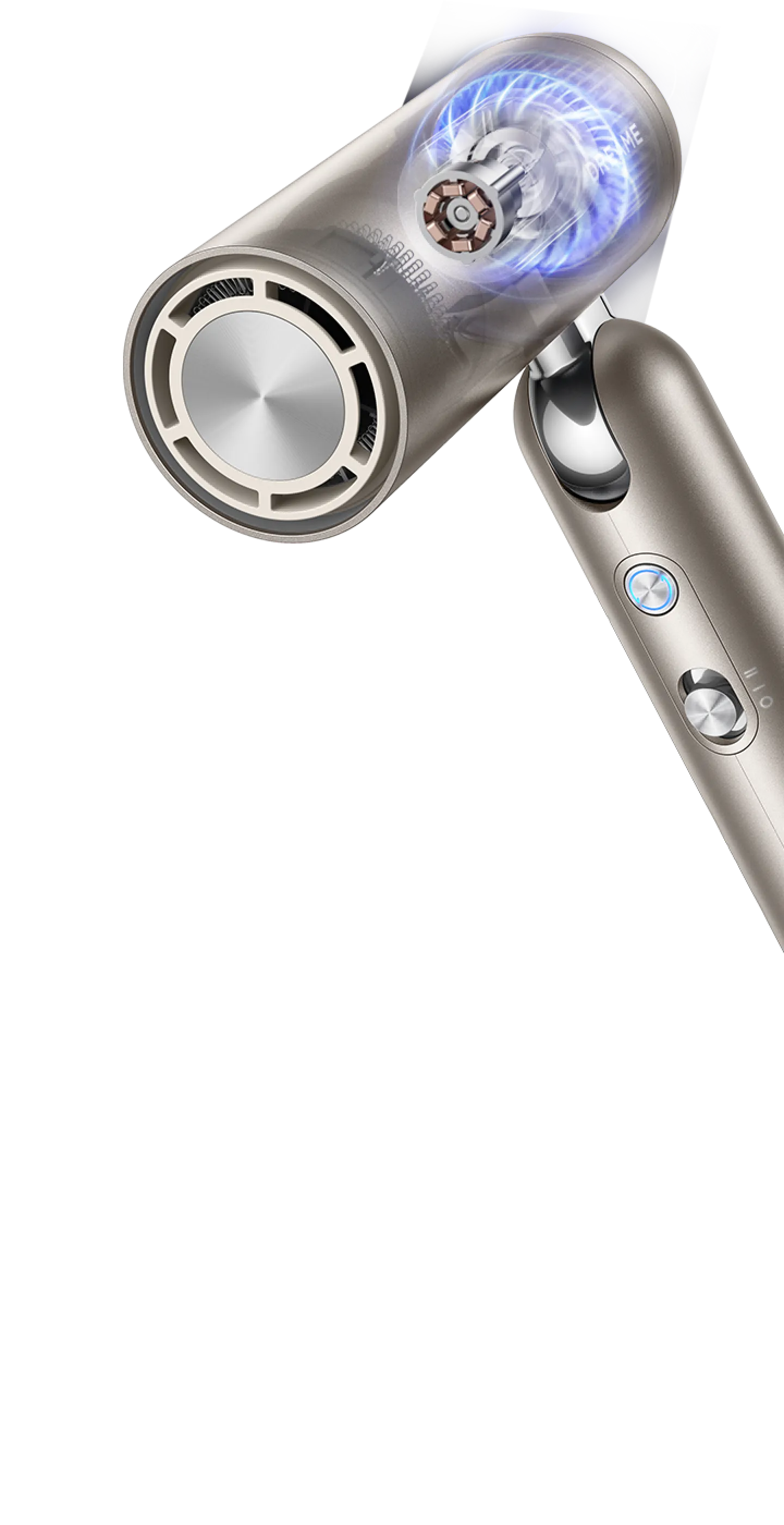 El motor proporciona una velocidad de aire rápida, llegando a secar el pelo corto en solo 40 segundos* con su potente flujo de aire para lograr un peinado rápido.