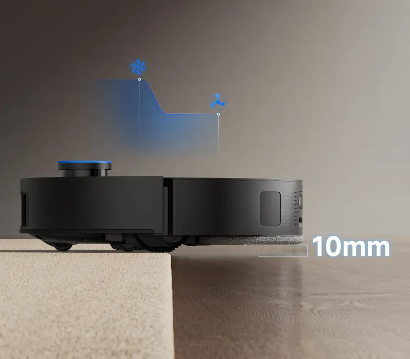 *10,5 mm: según las pruebas realizadas en nuestro laboratorio interno. la diferencia de altura del robot aspirador es de 10,5 mm antes y después de levantar las mopas.