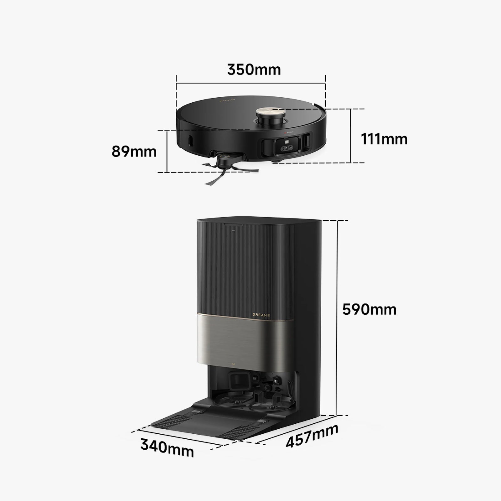 *89 mm: una vez activada la navegación VersaLift, el robot aspirador limpiará debajo de los muebles casi a la altura de su cuerpo, por lo que puede sufrir arañazos. Asegúrate de que la parte inferior y los bordes de los muebles sean planos y no tengan salientes.